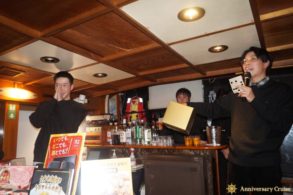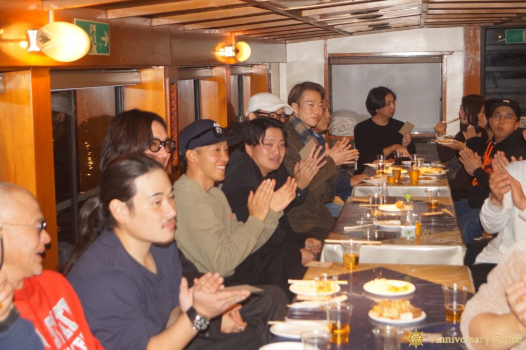 船内ではおいしい食事を囲みながら、普段はゆっくり話す機会の少ないメンバー同士も自然と会話が弾み、笑顔あふれる時間になりました。
