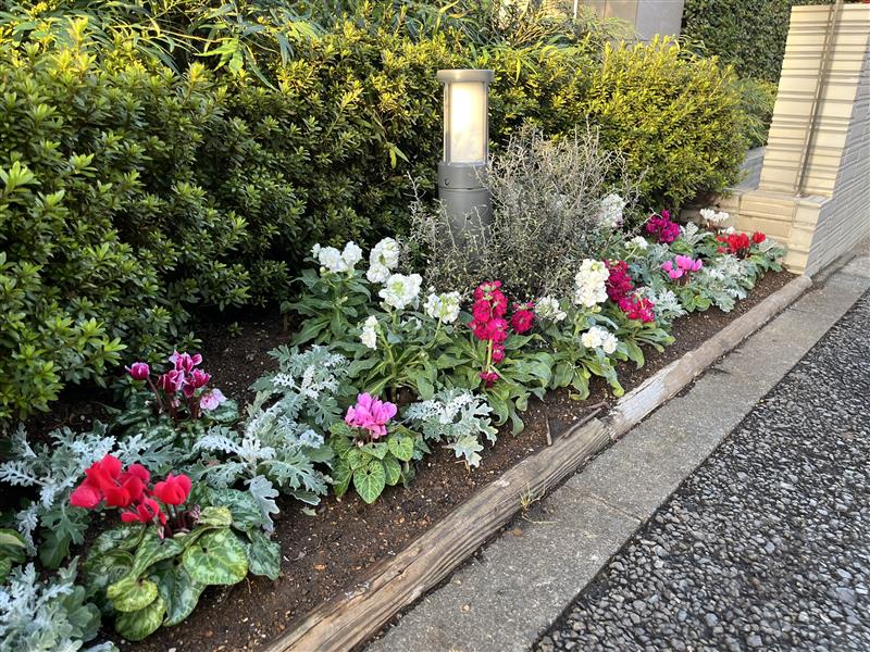 ❄️✨マンション花壇を“冬の彩り”に植え替えしました!✨🌸