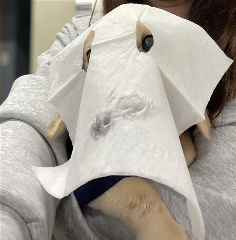 たまちゃんも負け時と急ごしらえのティッシュおばけで応戦💥💥