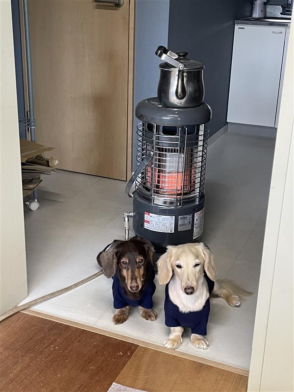 ストーブを付けると毎年近くにやってくるワンワンズ🐶🐶🐶🐶